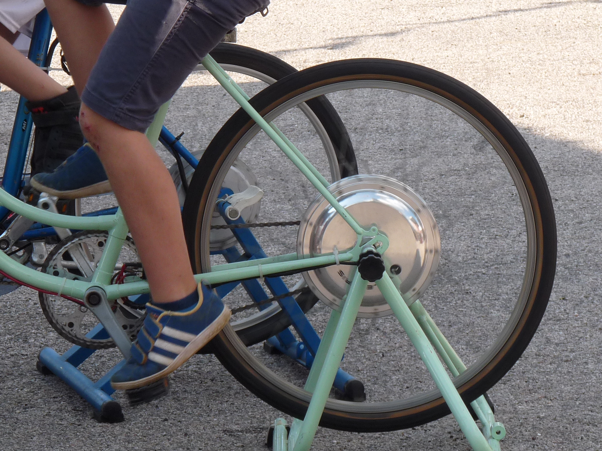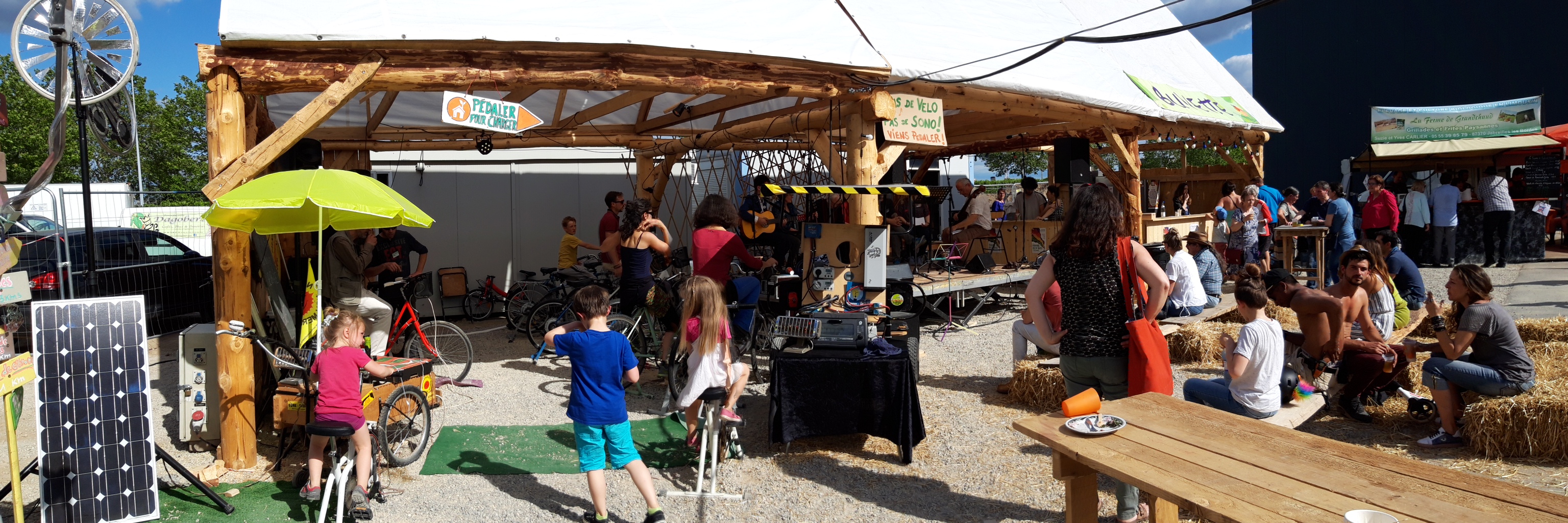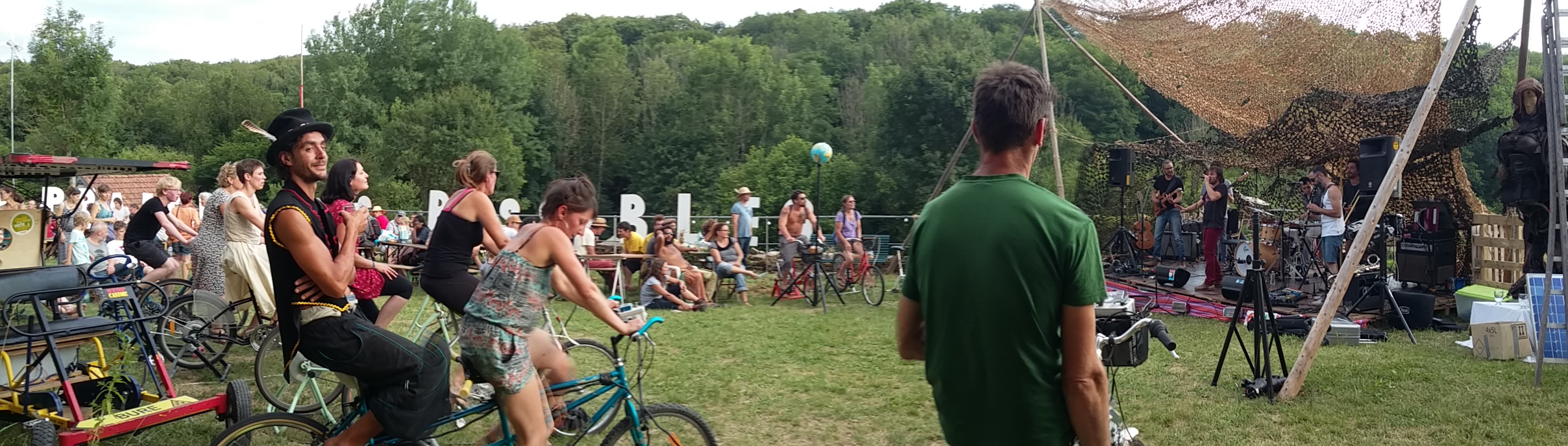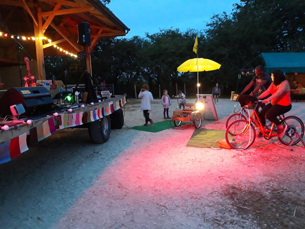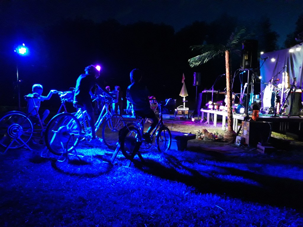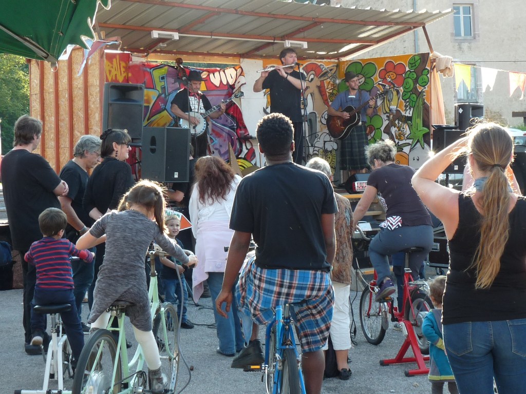 Faire ressentir l’énergie ; Fabriquer de l’électricité à la force des mollets ; Créer des connections entre les artistes et le public ; Installer une scène n’importe où en totale autonomie électrique ; Assurer la régie de concerts vélo-générés.