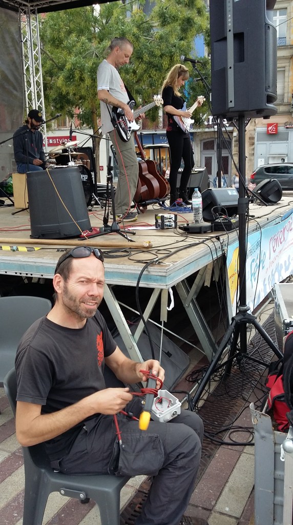 Pédale tes Watts, c’est 2 zigotos cyclistes musiciens et bricoleurs passionnés d’autonomie énergétique. Nico répare les vélos, Vincent tripote les sono. Connectés dans leurs anciens boulots, ils développent depuis plus de 20ans des systèmes autonomes pour mettre en lumière les musiques vivantes.